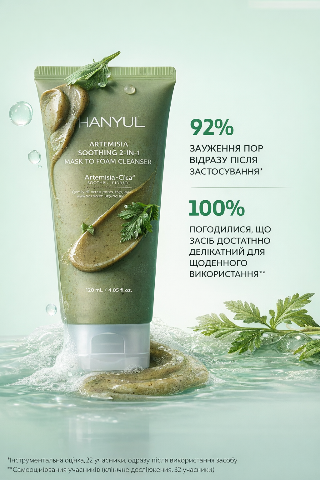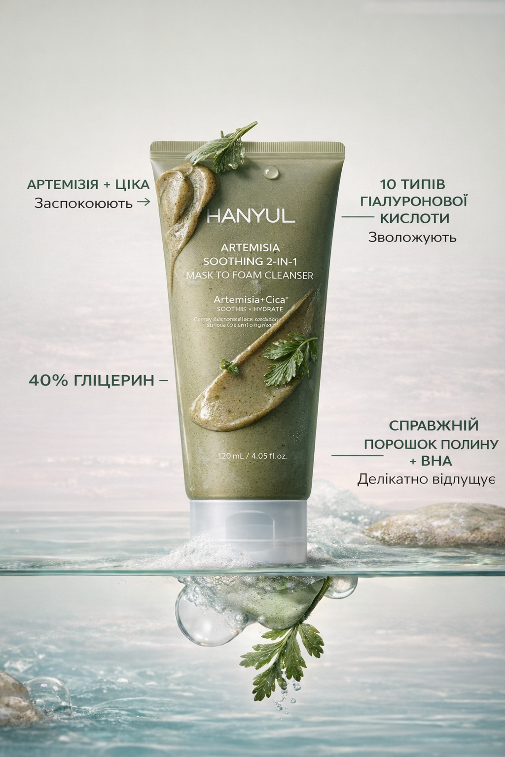 • Корейська пінка для обличчя HANYUL ARTEMISIA SOOTHING 2-IN-1